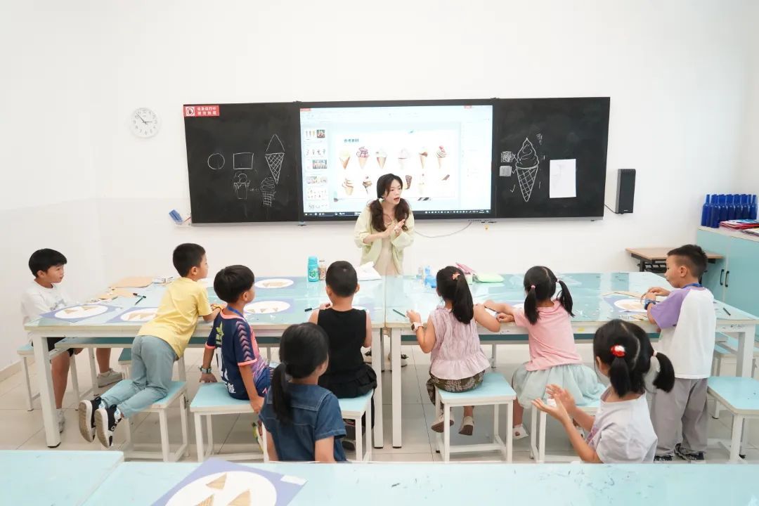 老师在孩子中间,用故事讲解色彩搭配,借着游戏演示线条运用,原本抽象的美术理论,就这样变成了孩子们能触摸到的快乐。
